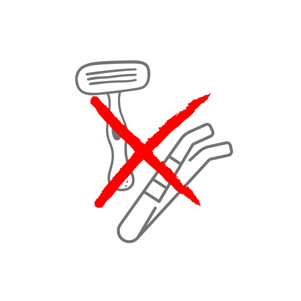 カミソリや毛抜き、脱毛ワックス・クリームでの自己処理は肌荒れ・炎症の原因になります。